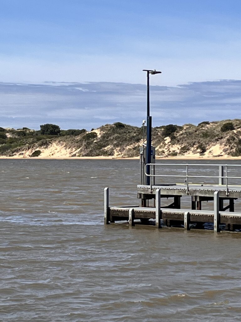 A semi-permanent entrance is maintained through the dune barrier at Marlo.